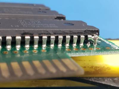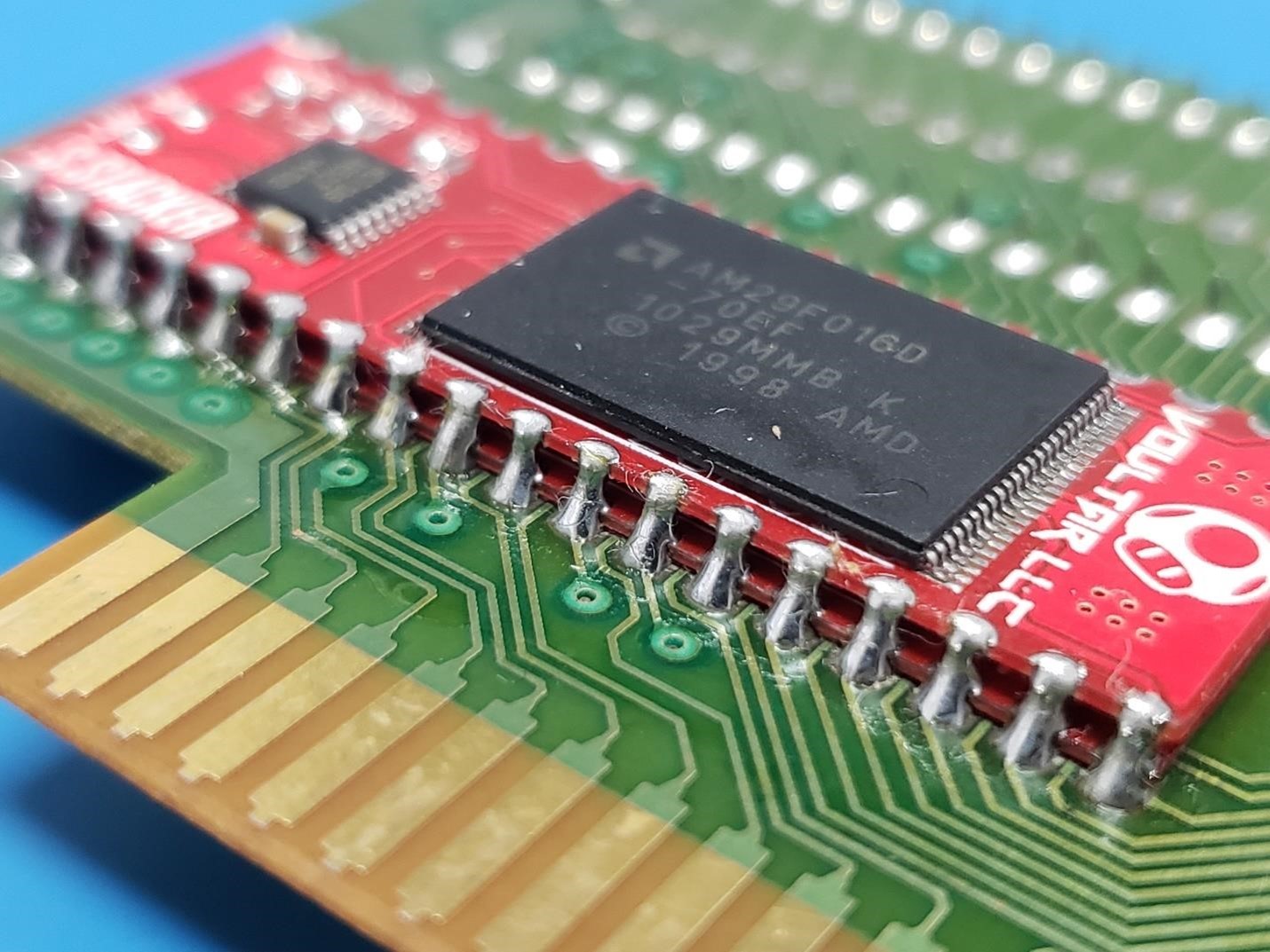 Check over your soldering and ensure that there are no bridges on your modules or memory chips. Clean the PCB of any residual flux and test your cartridge before reassembling.