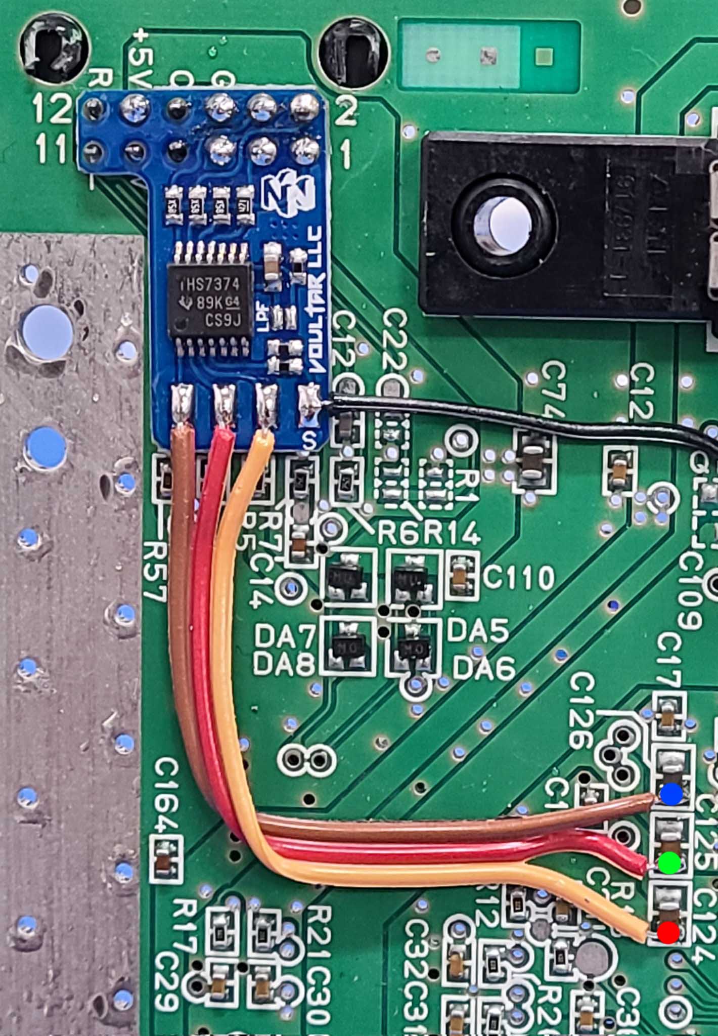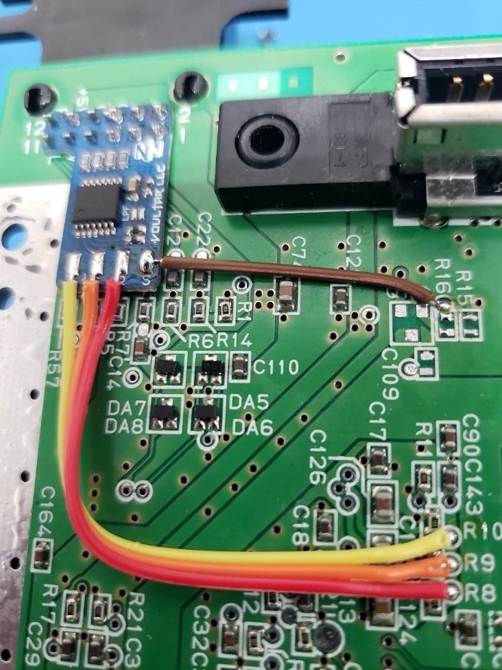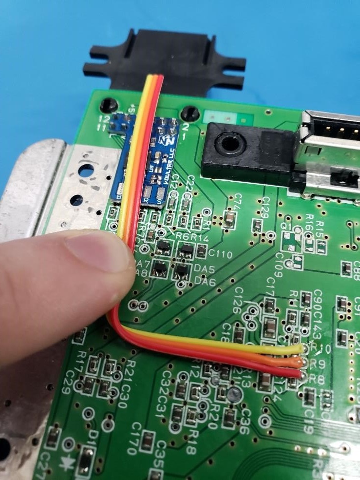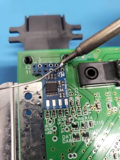 Solder the 3 conductors to the corresponding solder pads on the N64RGB kit: