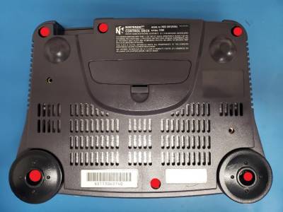 Using a 4.5mm game security bit, remove the 6 screws from the bottom of the Nintendo 64 & remove the top shell.