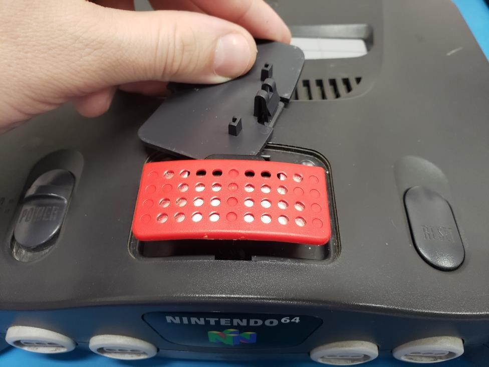 Begin disassembly by removing the jumper/expansion pak from the Nintendo 64.
