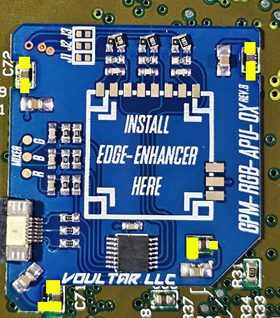This page will guide you through the advanced procedure of installing the SNES Edge-Enhancer kit into the SNS-APU-01(2) SNES/SFC revisions. The SNES Edge Enhancer is an edge correction modification that “deblurs” the video output, yielding much sharper pixels without sacrificing video quality. The SNES Edge-Enhancer is also a dedicated video recovery appliance that preserves and improves all video outputs. Electrically, the Super Famicom is identical to the SNES, making these instructions applicable to the NTSC-J (Japan) equivalent. You can purchase the SNES Edge-Enhancer kit from TBD.