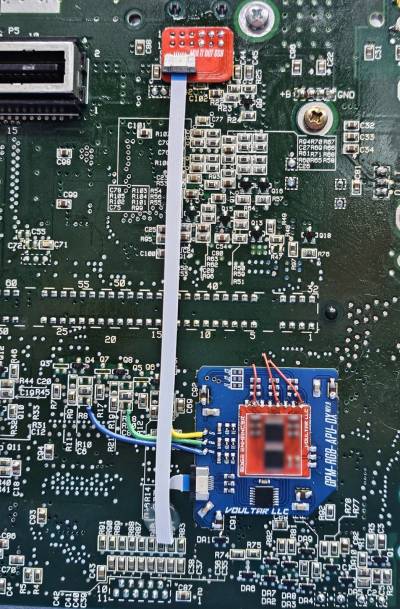 Tin and flux the wire and carefully solder it to lifted PPU2 pin 97. Repeat for pins 95 and 96.