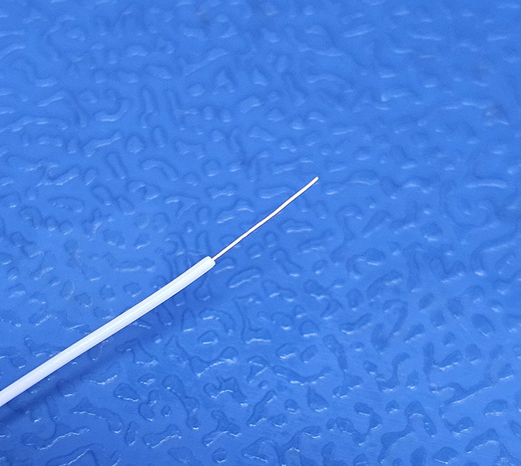 Insert the 30AWG conductor into the via at a slight angle so it will pass through.