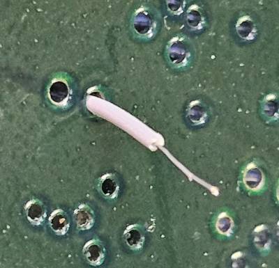 Manipulate the conductor until it's positioned in the corner of PPU2 and pull through with tweezers.